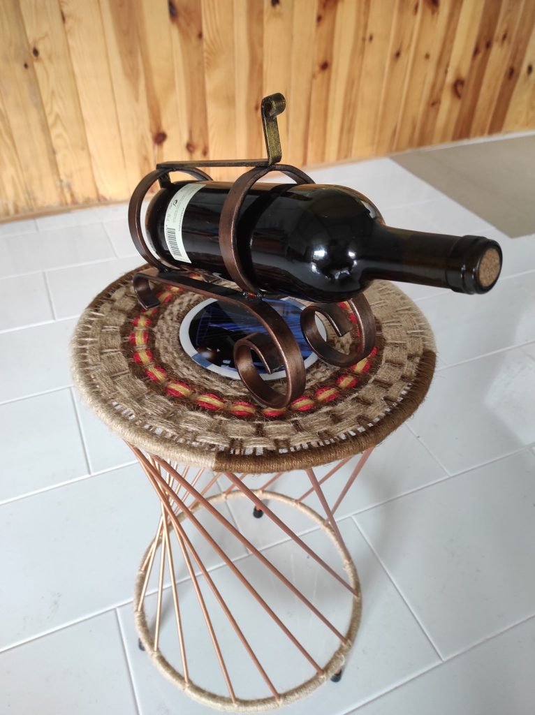 Percheros-Adornos Botellero Clásico Descripción:Llamativo botellero totalmente HANDMADE, forjado en frío, en hierro auténtico. Pintado a Mano, bronce envejecido.Dimensiones: Ancho 8.5 cms.; Largo 21 cms.; Altura: 20 cms. Botellero Dispensador Descripción:Estructura en hierro, tejido en yute natural, bloque de vidrio para el vino, características de este decorativo y funcional botellero dispensador. Dimensiones: Ancho total: 42 cms.; Prof.: 8 cms.; Altura: 20 cms. Perchero Guitarra Rojo Descripción:Original diseño Decorhierro. Combinación de hierro y madera para armar un perchero decorativo y funcional. Dimensiones: Ancho total: 60 cms.; Prof.: 9 cms.; Altura: 60 cms. Largo Diagonal: 57 cms. Perchero Guitarra Negra Otro espectacular perchero my decorativo y funcional. Totalmente hecho a mano, combinando hierro y madera.Dimensiones: Ancho: 52cms.; Alto: 66 cms.; Prof.: 7 cms.; Largo Diagonal: 76 cms. Perchero Clásico 1 Tradicional perchero de madera y hierro. Hecho a mano en madera de pino, puede hacerse de 5 y seis perchas.Dimensiones: Ancho: 52cms.; Alto: 18 cms.; Prof.: 13 cms.; Perchero Clásico 2 Sencillo, pero elegante perchero en madera y hierro. Sirve de Repisa.Dimensiones: Ancho: 36 cms.; Alto: 18 cms.; Prof.: 13 cms.; Ideas, sugerencias, preguntas, dudas... CONTÁCTANOS